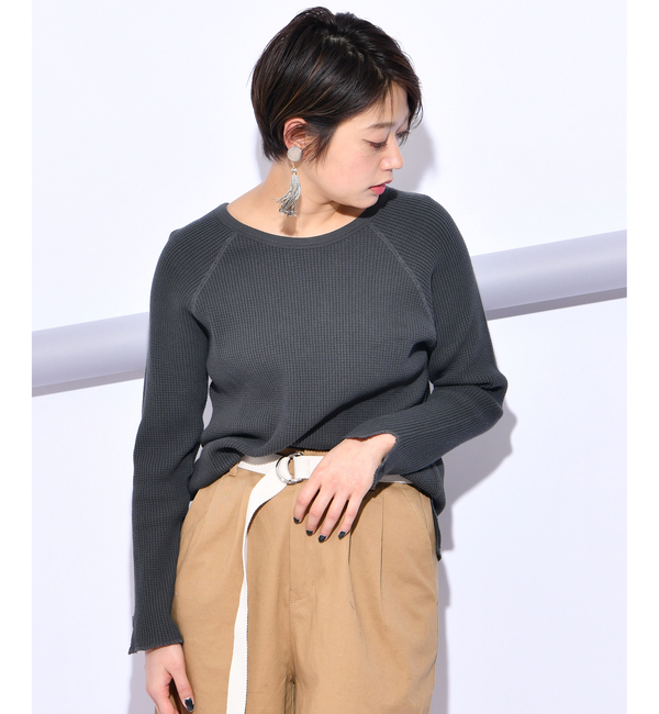 【送料無料】 暑くなってからも快適に着られるワッフル素材のプルオーバー。柔らかな素材感で肌触りがいいのが嬉しいポイント。前後どちらを前にしても着ていただけ、レースアップ部分は女性らしさと抜け感をプラスしてくれます。シンプルなデザインなので合わせるアイテムを選ばず、大人カジュアルにデニムと合わせても、トレンドライクにワイドパンツと合わせても、レディライクにスカートと合わせてもバッチリ決まる1枚。ロングシーズン楽しめるので、1枚あると重宝します◎ チャオパニック/CIAOPANIC トップス|Tシャツ・カットソー