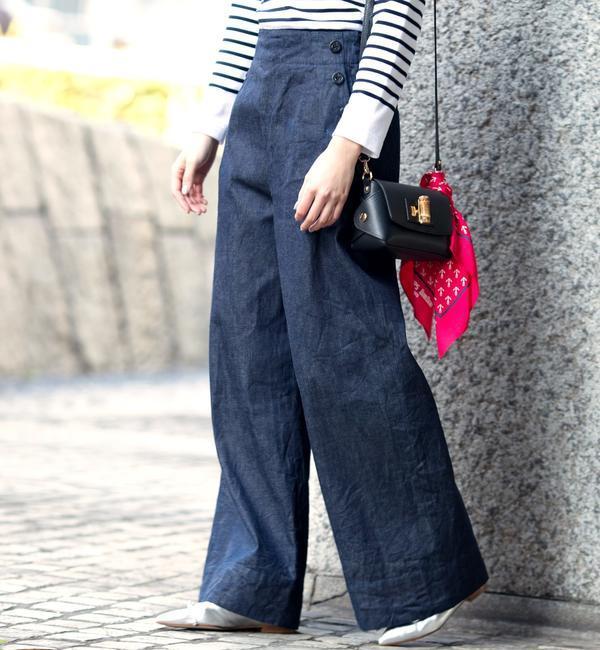 【送料無料】 「SHIPS」・「BLUE BLUE」スペシャルコレクション発売1975 年、SHIPS の前身である「ミウラ&サンズ」がオープン。同年、HOLLYWOOD RANCH MARKET は「聖林公司」を創立し、その後オリジナルブランドとして BLUE BLUE が誕生しました。今回「SHIPS」と「BLUE BLUE」共通のテーマである「MARINE」をコンセプトに、互いのリスペクトから生まれたスペシャルコレクション全 10 アイテムを、「SHIPS」と「HOLLYWOOD RANCH MARKET」、「BLUE BLUE」全店舗及び ONLINE SHOPにて販売。1946 年創業のアメリカンスラックスブランド「THOMSON(トムソン)」日本では「SHIPS」がいち早く取り扱い、それまでワークパンツでしかなかったチノパンツをトラッドに昇華させたブランドです。「THOMSON」・「SHIPS」・「BLUE BLUE」のコラボレーションは「BLUE BLUE」オリジナルのデニムを使用して、ウイメンズではマリンパンツとスカートを展開します。BLUE BLUE オリジナルデニム(ワンウォッシュ)を使用したセーラーパンツは、ハイウエストでワイドシルエットが特徴。バックのウエスト部分レースアップは元来、水兵が脱ぎ易くするために施されたもので、着こなしのアクセントになります。※他の衣類等に色が付着することがありますのでご注意下さい。※この製品はインディゴ染めです。洗っていくごとに独特の色落ちの変化を楽しめます。※末永く愛用頂く為に、アテンションタグ・洗濯ネームを必ずご確認の上、着用又はお取り扱い下さい。※画像の商品はサンプルです。 実際の商品と仕様、加工、サイズが若干異なる場合がございます。 シップス/SHIPS SHIPS for women|パンツ|デニム