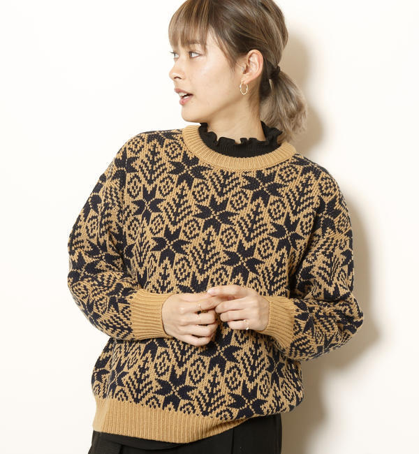 雪柄ニットプルオーバー