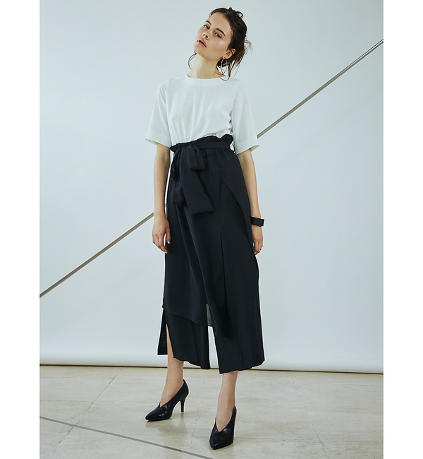 【送料無料】 着るだけでオシャレを演出をしてくれるコンビネゾン。全体的にゆるっとした優しいシルエットながらウエストがきゅっとしまりスッキリとした印象に◎足元はパンプスやサンダルなどキレイめなものとの相性も良いですが、あえてスニーカーなどと合わせてフォーマルダウンした着こなしもオススメです。スカートはシフォンのようにふわっと軽く透け感のある素材になっているので、重たくならず、パンツとのレイヤードもスタイリッシュに決まります。(ホワイト)model:H174・B80・W60・H89 着用サイズ:M マイセルフ アバハウス/MYSELF ABAHOUSE MYSELF ABAHOUSE|パンツ|オールインワン