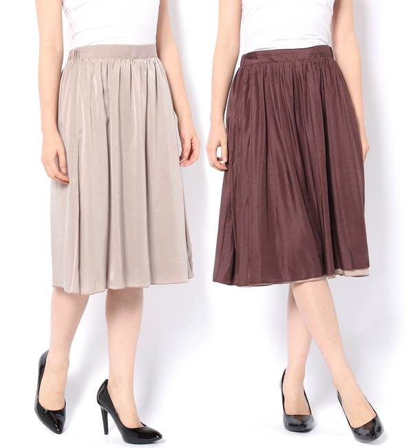 【送料無料】 光沢ある素材で柔らかく落ち感のある生地でゴージャス感も漂わせつつ、すっきりとしたシルエット。リバーシブルなのでその時の気分やコーディネートで表・裏の両方のカラーを楽しめる秀逸アイテム。〇ダークグレー×ピンク〇ベージュ×ダークブラウン〇サックスブルー×グレーのそれぞれのカラー展開。バックウエストがゴム仕様になっているので履き心地もバツグン!動きがある生地で、風に触れた時や履いた時にチラリと見える別カラーが魅力的。控えめな光沢が上品見えも叶えてくれる、ワードローブにぜひとも加えたいアイテム! コラージュ ガリャルダガランテ/COLLAGE GALLARDAGALANTE スカート|スカート
